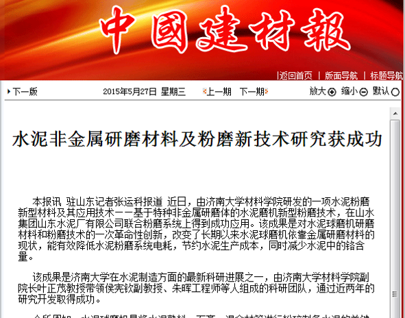 2015年5月27日中國建材報首版刊登非金屬研磨體的新聞報道